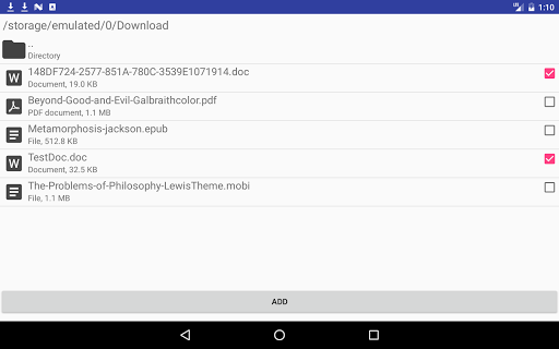 With our Converter you can add to task several documents at once, simply select the built-in file manager multiple documents and click "Add".