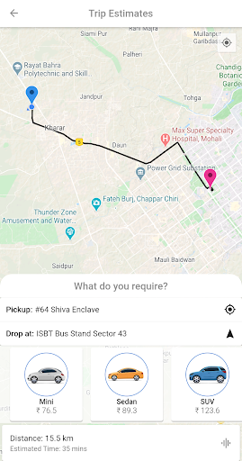 - Four variants are available for Local Taxi Service names as MINI, SEDAN, SUV and AUTO.