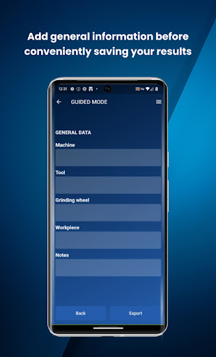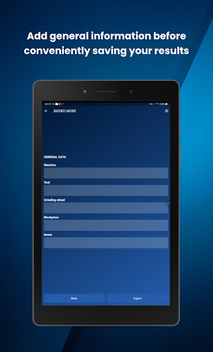 All calculated parameters can be exported and archived as a PDF file. For this purpose, the app offers the option of providing the calculated parameters with information on the user, machine and application.