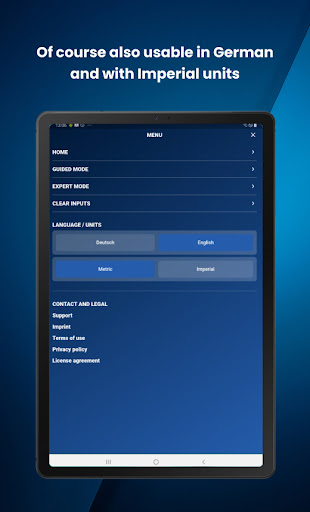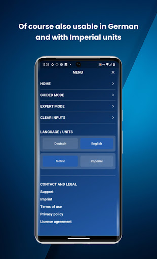 All parameters can be calculated in metric or imperial system, so that all users can work with their preferred units.