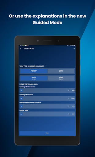 The new Guided-Mode guides you step-by-step through the selection of the optimal dressing parameters for your grinding application.