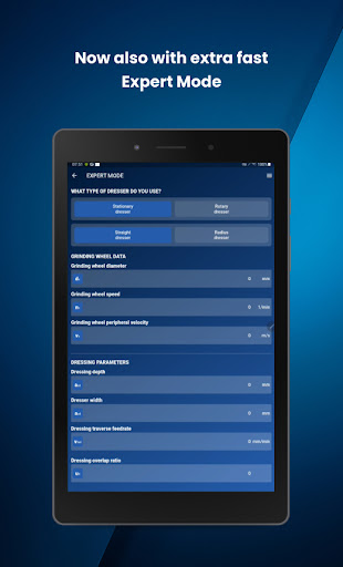 The Expert-Mode supports experienced users in the calculation of dressing parameters.