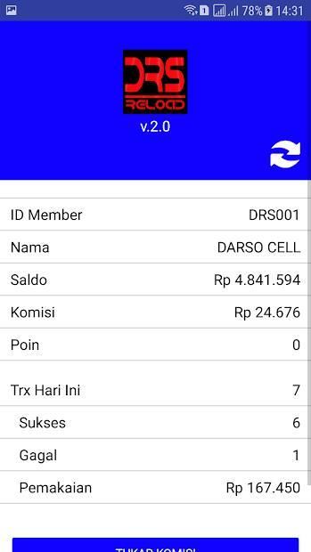 Aplikasi Mobile Android Untuk Melakukan Transaksi Pulsa Dan Bisa Melakukan Pendaftaran Menjadi Agen Atau Mitra Pulsa.Dengan Hanya Satu Melakukan Daftar Di Aplikasi DRS RELOAD MOBILE.Pembelian Pulsa Token Listrik Anda Dapat Mudah Dengan Hanya Satu Aplikasi Ini Anda Dapat Melkukannya Di Mana Pun Berada.