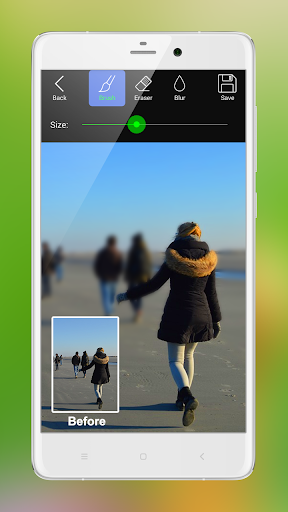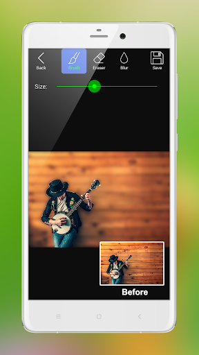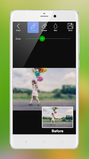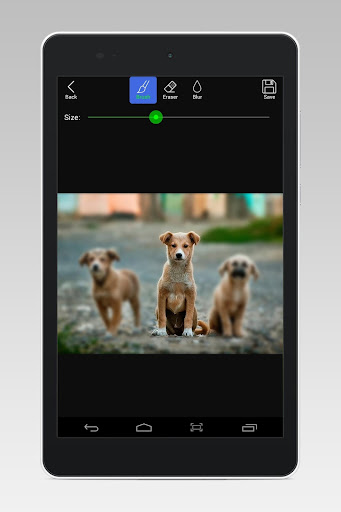With this app, you can change the brush/eraser size, you can adjust the blur intensity, and you can save the image and share it to social media like Facebook, Instagram, Whatsapp,etc.