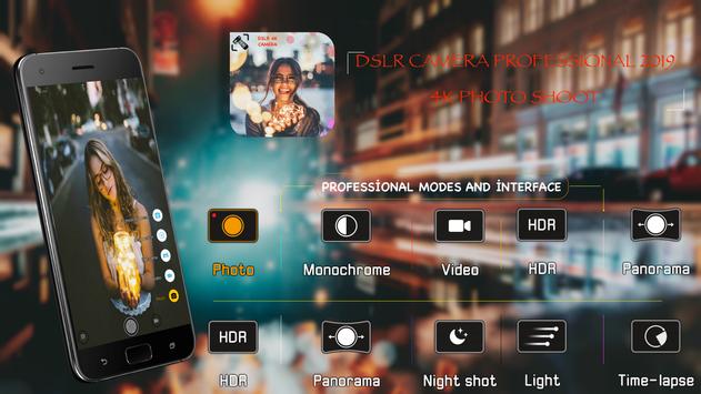 DSLR camera Hd Professional is specially designed to get high quality phones and videos. With this app you can take ultra quality photos with your professional camera. This app was developed with special attention to meet the users to get the best HD picture quality from their device camera.