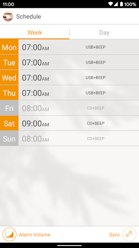 ・Alarm Settings: select different times and sources for each day of the week