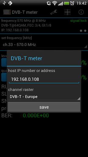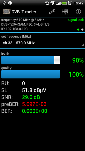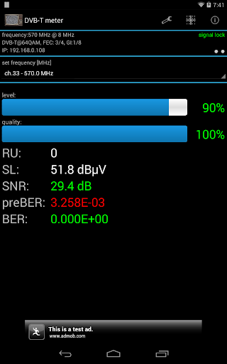 The principle of work this app is simple: using a computer network the application displays digital terrestrial television signal level bars on the screen of your phone or tablet. In addition, if you have for example