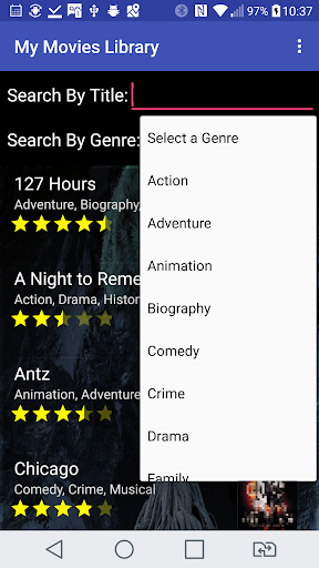 Next time you want to decide on a movie, just scroll through our app, and easily choose a movie based on title or genre.