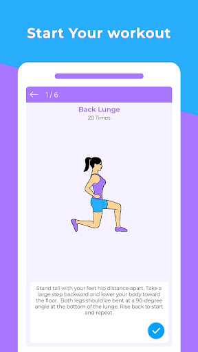 This exercise app for women provides you with a complete workout plan for hips, buttocks, thighs, legs, and glutes.