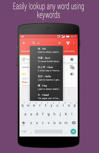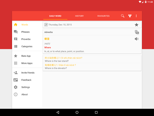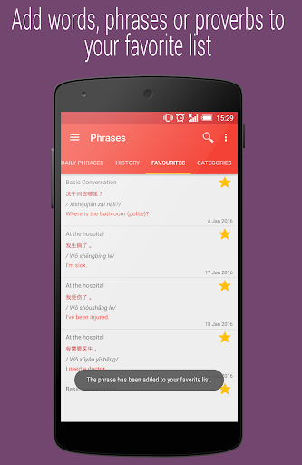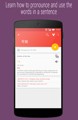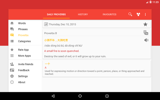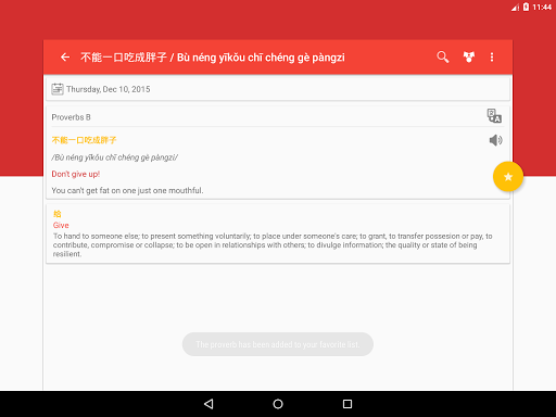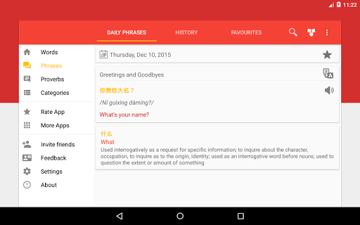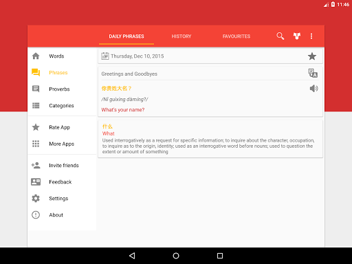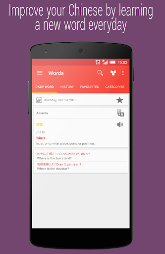 "Daily Chinese" contains the commonly used Chinese words, proverbs and phrases for beginners and intermediate learners. You will receive a notification with a new word, proverb or phrase daily. You can practice your speaking and listening skills with the Chinese pronunciation guide and sounds, wherever and whenever you are. The words are linked to phrases making learning Chinese much easier as you get along with daily practice and review word usage. For Chinese speakers, you can use the app to improve your English.