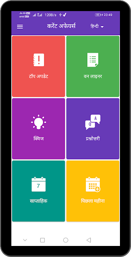 Daily Current Affairs In Hindi 2019-2020-2022-2023 All Exams App has six categories :