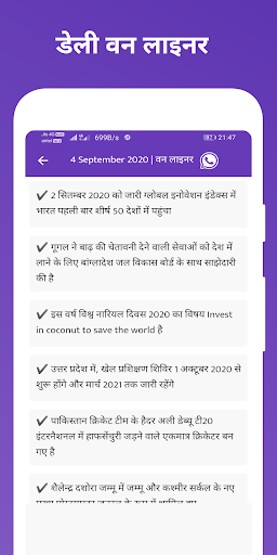 2. One Liner Current Affairs:- You can read daily new and latest current affairs in a single line.