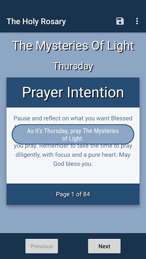 All the Catholic prayers are presented in full and the app automatically loads in the mysteries of the day, allowing you to concentrate on praying.
