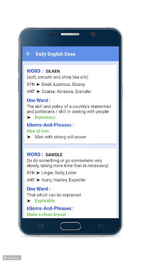 Daily English Dose application contains all previous years exam's questions, synonyms and antonyms, One words and Idioms and Phrases.