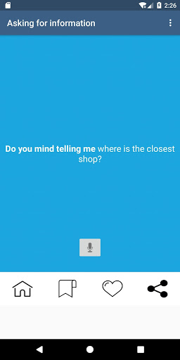 In Daily English phrases application you can save your favorite phrases using add to Favourite button, also you can bookmark any phrase in any category.