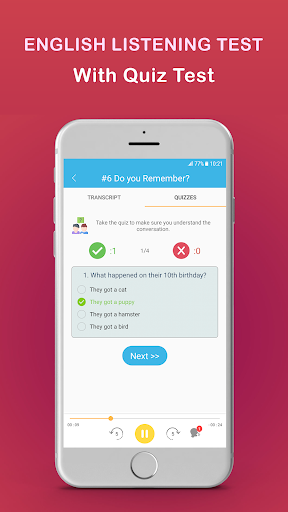 This Daily English Practice application will help you improve your English speaking skills and your English listening skills. This English listening daily application provides more than 1000 English conversations in the real life and in the business.