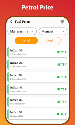 Indian Government decide to change Fuel price (Petrol & Diesel) daily.You can track the daily price of petrol and diesel fuels around you in seconds.Because