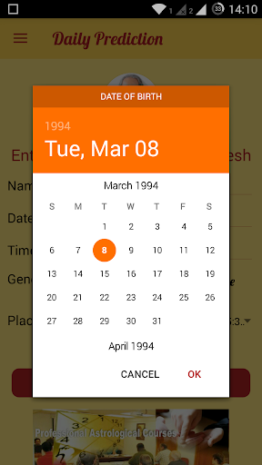 Get Daily Prediction based upon Date of Birth, Time of Birth and Place of Birth.