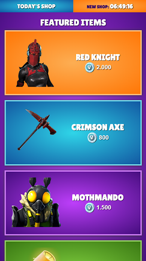 Our professional team of developers, has gathered within the app a series of features so that users can see the new shop Battle Royale today and have a great experience within it.