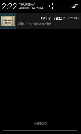 Daily Jewish Wisdom offers hundreds of carefully chosen proverbs and other Jewish sayings covering many different aspect of daily life. You will be amazed to find how these ancient pieces of wisdom resonate well with your daily challenges and experiences. The app requires a one-time setup (taking 10 seconds to complete) and from then on runs in the background. Depending on your selection, it will generate one or more notifications per day with a randomly chosen Jewish proverb.
