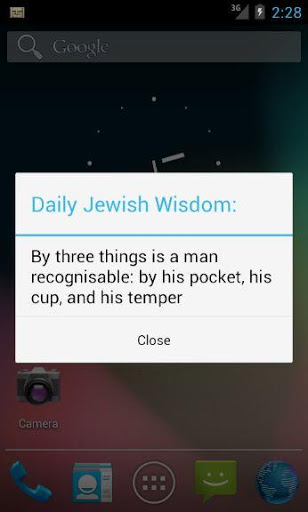 Tap into the world of ancient Jewish wisdom with a daily proverb from the Jewish tradition. Let your phone be your little Jewish sage of the Talmud era bringing you daily gems of wit in either Hebrew or English.