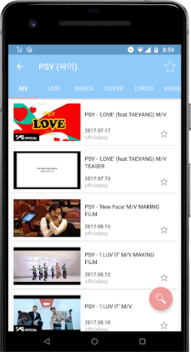 * Categorized by M/V, Live, Dance, Cover, Lyrics, Karaoke