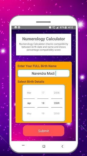 ♥ Numerology Calculator - check compatibility between name and birth date and draws percentage score.