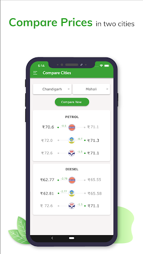 * Compare multiple petrol pump rates (IOC, HP, BP etc)
