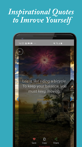 Positive Life Quotes app will help you achieve greatness in life, fight depression, overcome anger and succeed in relationships. Positive Motivation is so important in life, it helps you stop asking questions and align yourself towards your goals and aims.