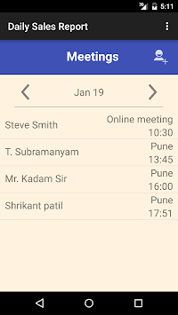- Add your meeting plans with customer details, schedule & location and the App will notify you in time for such Sales calls.