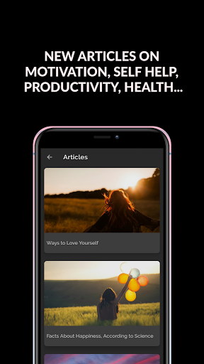 The Inspirational Quotes app also contains articles to read on topics like health, happiness, creativity, positive thinking, self-help, habits, life lessons, motivation, self-improvement, confidence-boosting, and more.