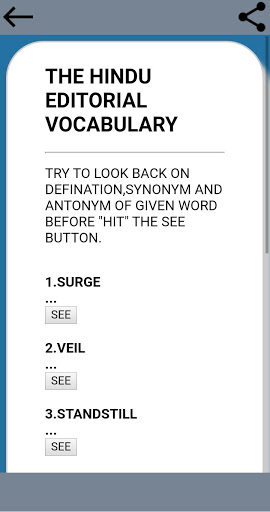 on quiz basis in different section of exam pattern like antonym, synonym, one word substitution and so on. It is now easier to understand newspaper editorial vocabulary such as HINDU,INDIAN EXPRESS etc.