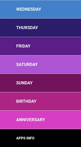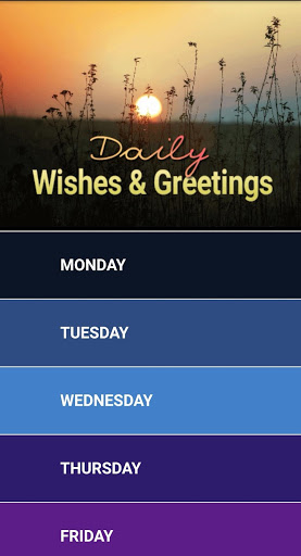 Get this new Daily Wishes and Greetings for your family and friends. This app provides users with all kinds of wishes from Monday to Sunday use and suitable for all ages. This app is highly user friendly and very easy to navigate. Cheer up yourself or others with this wonderful Daily Wishes and Greetings. Be enjoy and have fun.