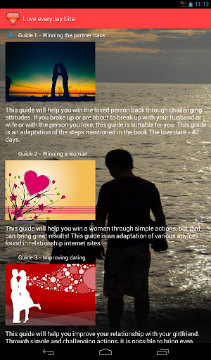 This app will guide you everyday through guides made for winning or winning the loved one back. Different guides can be chosen, depending on your objectives.