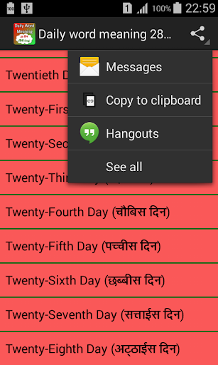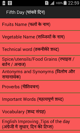 This application enhance your learning skills of english with few simple steps you can learn english in 28 days there are day wise division of chapter so that you can easily learn and speak the language properly. So download the application and learn it.