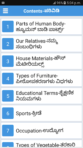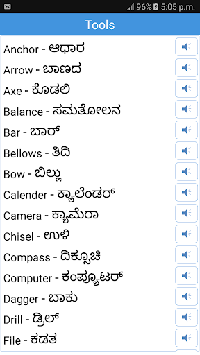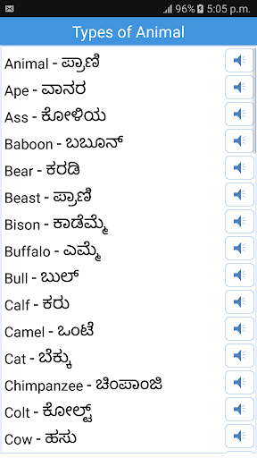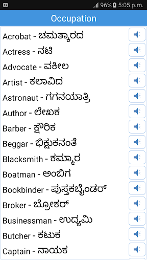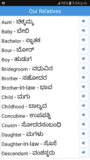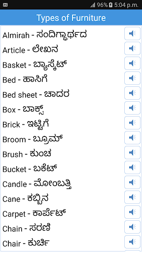 This English to Kannada or Kannada Daily Words with sound help you to learn English.This Daily Words also help to learn English to Kannada Translation and spoken in English. Here you also get most common daily necessary vocabulary.