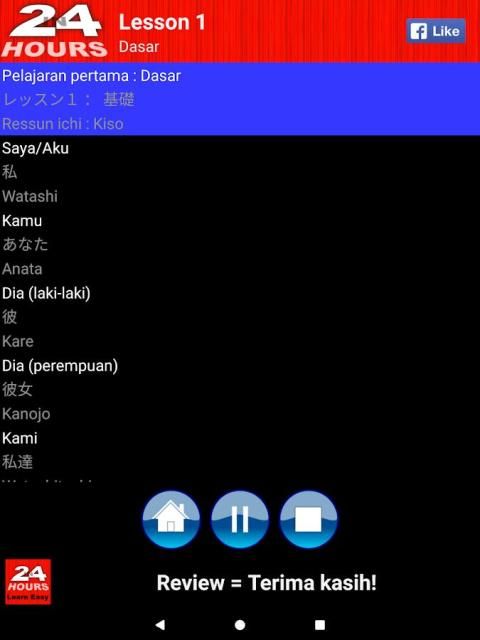 Too busy to get the Japanese language course? Or may be too expensive? You are not alone and we have the solution! With the audio feature in this application, you can learn anywhere, in the car, while jogging or perhaps while relaxing in bed. Just plug the headset and start learning!