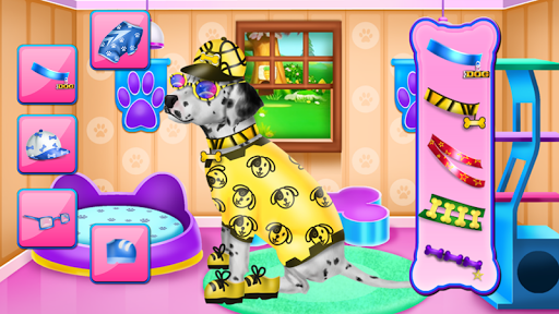 As the puppy recover you have one more step to go through, the dressing up one. Take your imagination with you and try to discover a new style for this dog, but keep his special dotted look centralized because this is what makes him unique. Continue practicing your skills until you are worth of a real dog and maybe you will get one. Don't miss the fun too.