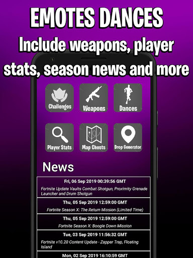 You can enjoy this new app with more dances, Fortbytes, emotes, player stats, season news, weapon's stats and more!