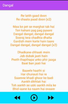 Dangal is the Songs Lyrics applications that is suitable in your phone and it's easy to use and free for you. Everything on this application is intended only for entertainment. Just search for any movie songs lyrics and you're getting all the songs from Dangal, that you're looking for.