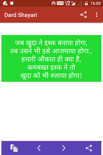 Shayari is one of the best thing that is used to place your emotion to anyone .This app is one of the sad shayari hindi collection also its totally free and no internet required . Use this amazing unlimited sad shayari and share to emotion feeling to someone .