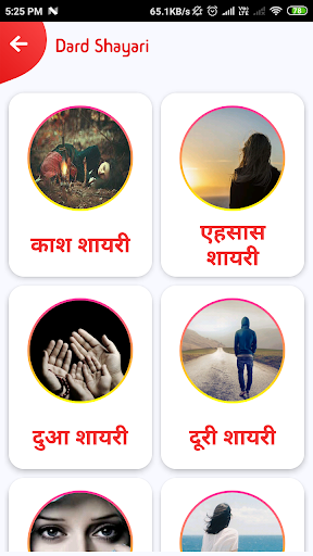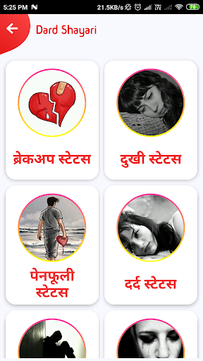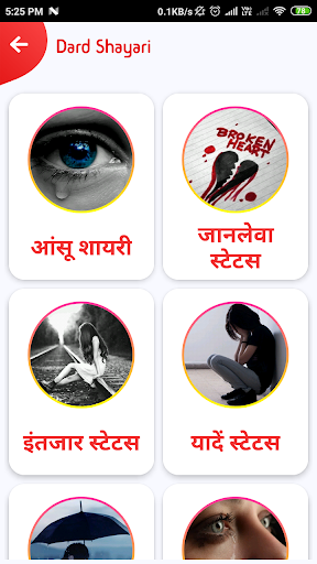 The app is having categories like hindi bewafa shayari and romantic shayari with latest collection.