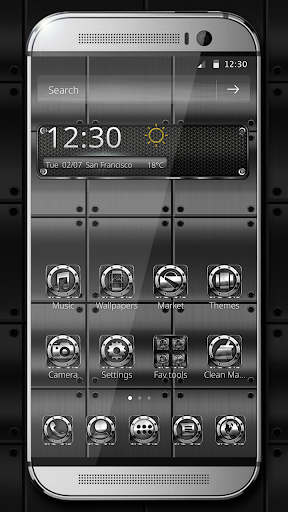 Download this cool new theme and transform your phone into an elegant and modern original look. Using carefully crafted metallic textures, lighting effects, reflections and gradients, it will give your phone's screen a great contrast and quality look.