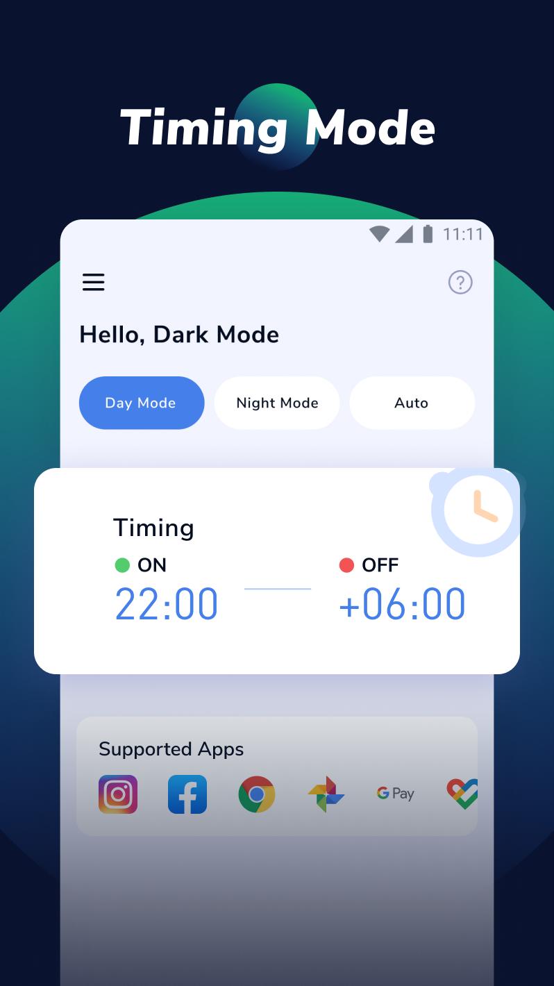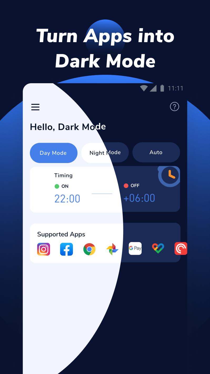 Dark Mode helps to activate the android dark mode on devices that do not provide this option in the system settings. You don’t need an Android Q phone to enable this function, android 6, 7, 8 and 9 are fully supported!
