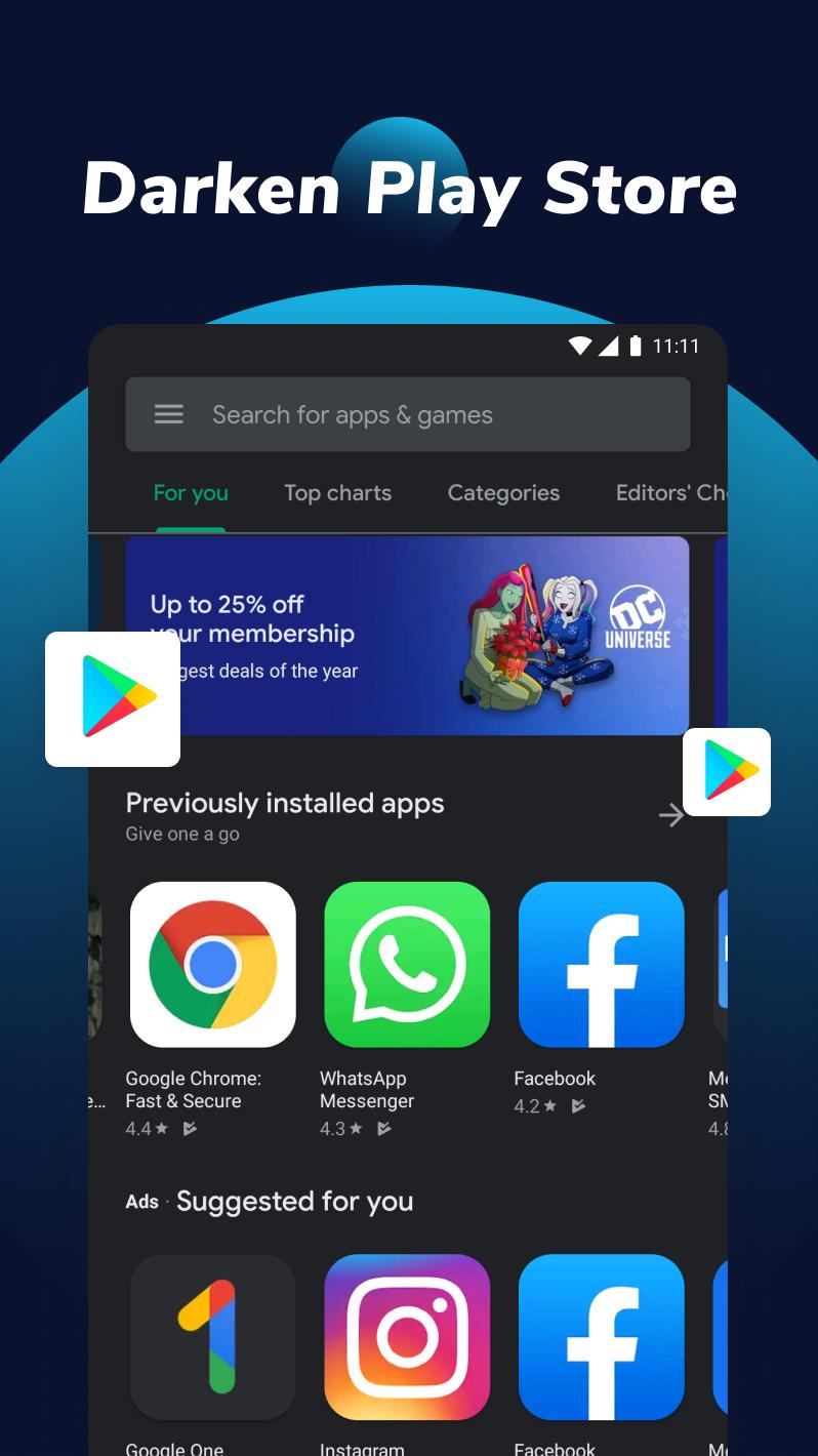 ☆ Make most Google apps in dark mode, including Play Store, Google Pay, Photos, etc.