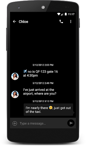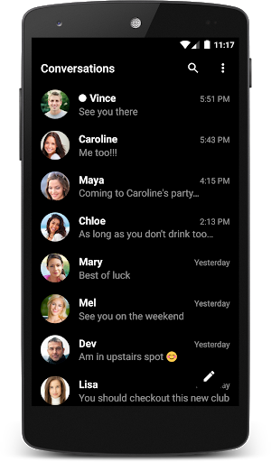 This is the Dark Mode Black theme add-on to the chompSMS application. Once installed, access the theme in chompSMS > Settings > Theme It! Note: requires at least chompSMS version 6.31