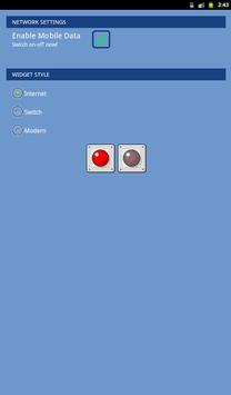 Connect and disconnect your 2G 3G Internet mobile data using this WIDGET with a menu with options in your main application giving it greater flexibility.