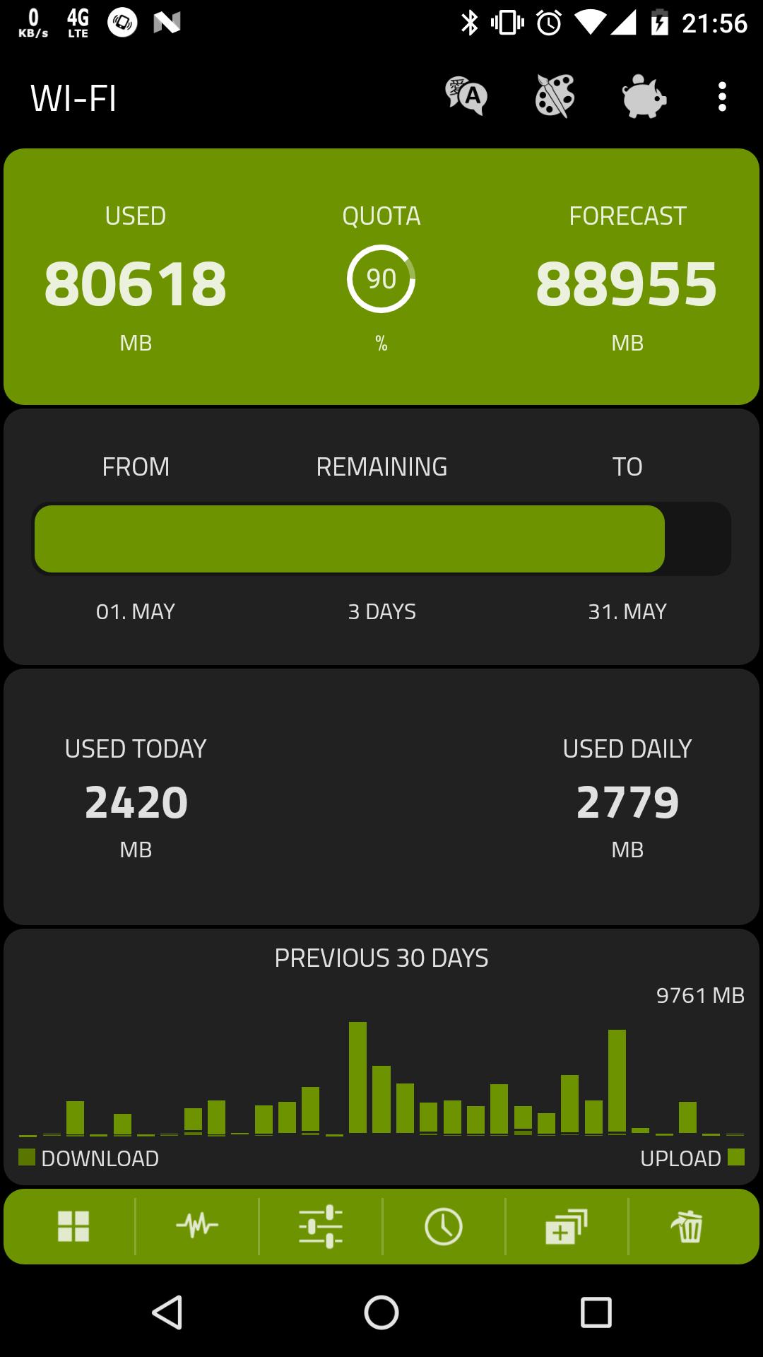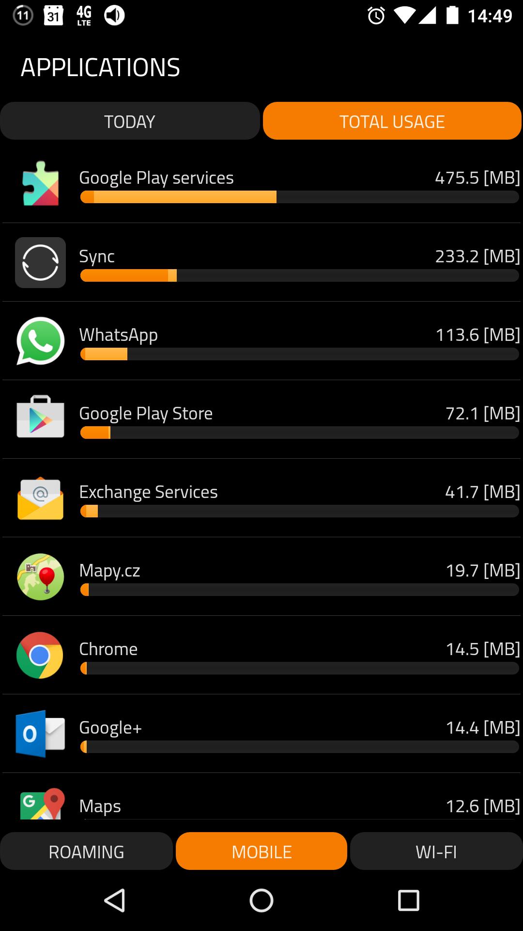 # Monitor data usage based on applications divided by network (mobile, roaming, Wi-Fi)