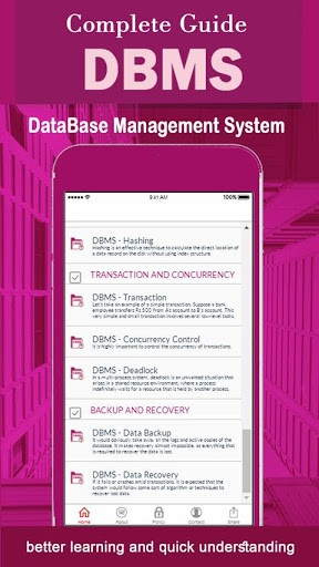 The app is a complete free Tutorial of Advance Database management system - DBMS