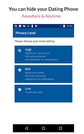 Control your privacy and define your Dating Phone as a covert & hidden or as a regular app. Activate the Dating Phone through your dialer.
